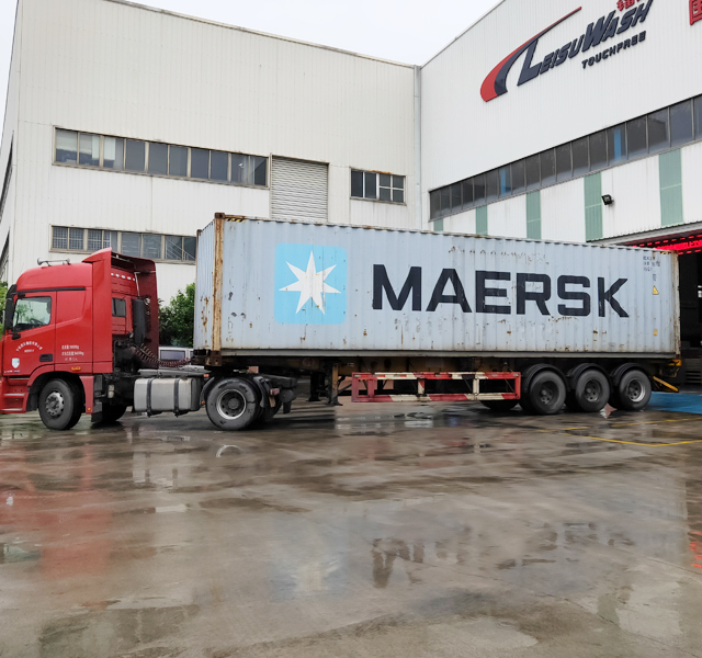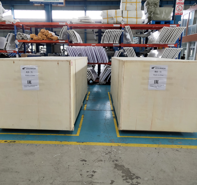 2020年6月3日,俄羅斯加里寧格勒Robot Car Was再次訂購(gòu)的2臺(tái)鐳豹360炫彩型洗車機(jī)正在裝車,設(shè)備將從寧波港裝船出海運(yùn)抵加里寧格。設(shè)備總重量5200kg,26個(gè)立方,14件貨。