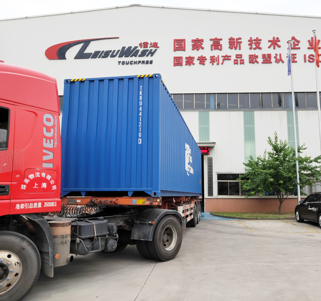 2020年5月31日,俄羅斯莫斯科代理商再次訂購的9臺鐳豹360炫彩型洗車機,首批3臺正在裝車,設(shè)備將從寧波港裝船出海運抵莫斯科。設(shè)備總重量7800kg,38個立方,21件貨。