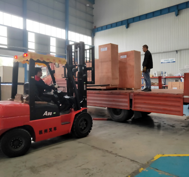 2019年11月12日,山東省臨沂市藍丞汽車銷售公司訂購的一臺鐳豹360炫彩型洗車機正在裝車,預計4天時間設備可以運抵用戶處。設備總重量:2800Kg,10.5立方,7件貨。