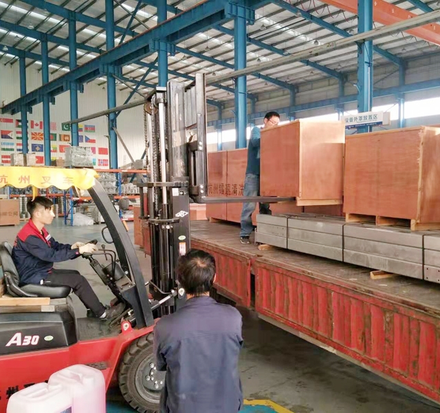 2019年10月31日,山東省德州市紐斯達汽車服務(wù)訂購的四臺鐳鷹S90標準型自動洗車機正在裝車,預(yù)計3天時間設(shè)備可以運抵用戶處。設(shè)備總重量7200Kg,43.2個立方,24件貨。