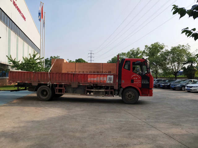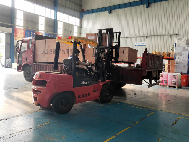 2019年6月14日,青海省西寧市湟中縣中囤加油站訂購的一臺鐳豹360炫彩型洗車機正在裝車,預計7天時間設備可以運抵用戶處。設備總重量:2800Kg,10.5立方,7件貨。