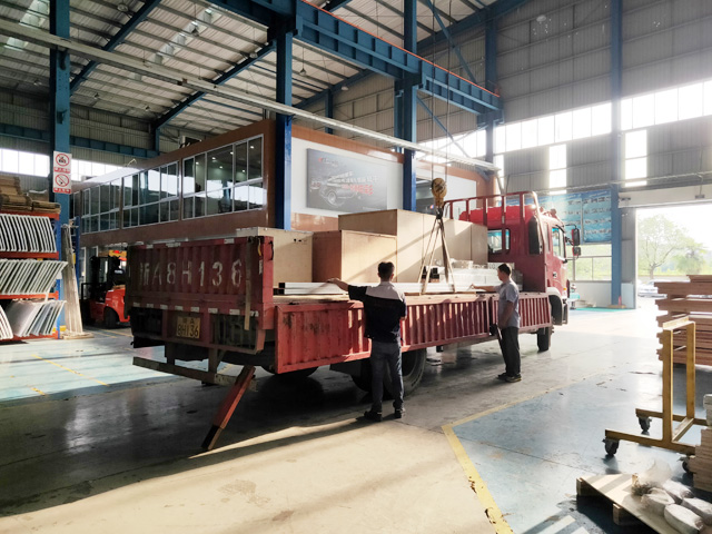 2019年6月11日,山東省青島市惠利加油站訂購的一臺鐳鷹S90風(fēng)干型自動洗車機正在裝車,預(yù)計4天時間設(shè)備可以運抵用戶處。設(shè)備總重量1800Kg,10.8個立方,6件貨。