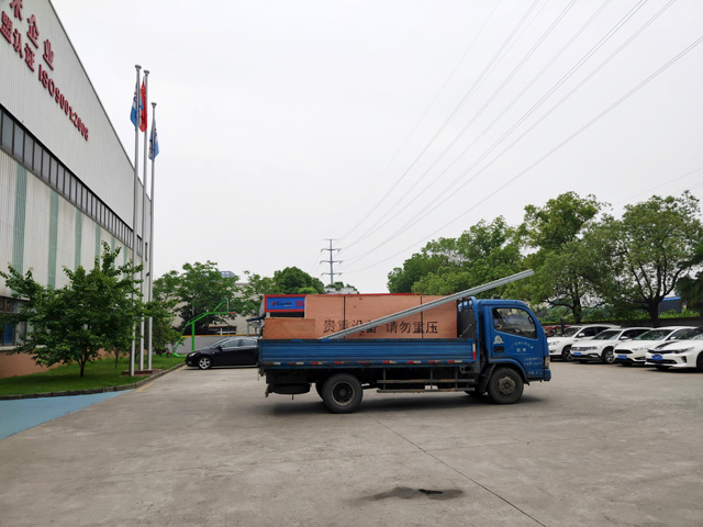 2019年6月1日,四川省雅安市中海石化加油站訂購的一臺鐳鷹S90風(fēng)干型自動洗車機正在裝車,預(yù)計6天時間設(shè)備可以運抵用戶處。設(shè)備總重量1800Kg,10.8個立方,6件貨。
