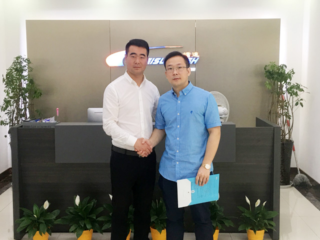 2019年4月21日,江蘇省揚州市高郵菱佳加油站胡總親臨杭州鐳速公司,考察鐳豹自動洗車機。無與倫比的清洗效果和高品質(zhì)的產(chǎn)品得到了胡總的認可,現(xiàn)場簽訂一臺鐳豹360極速型洗護一體機。