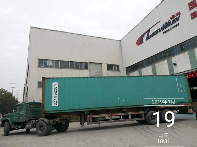 2019年1月19日,澳大利亞墨爾本U Wash & Wash UP訂購(gòu)的一臺(tái)鐳豹360卓越型洗護(hù)一體機(jī)正在裝車(chē),設(shè)備將從寧波港裝船出海運(yùn)抵澳大利亞墨爾本。設(shè)備總重量3400Kg,13.5個(gè)立方,10件貨。