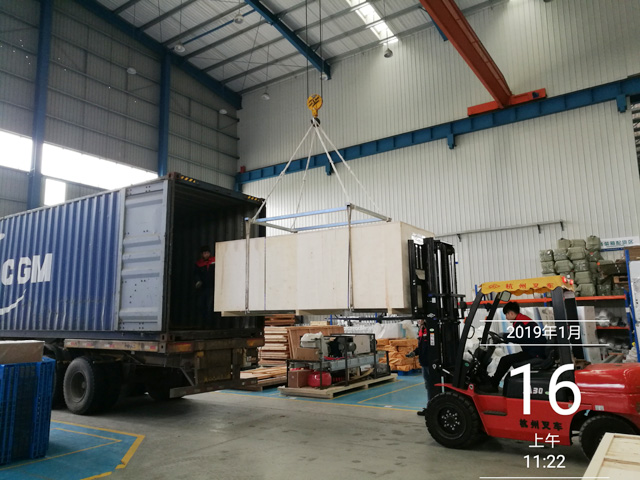 2019年1月16日,沙特阿拉伯Hussein Mahdy公司再次訂購的兩臺鐳豹360炫彩型洗護(hù)一體機(jī)正在裝車,設(shè)備將從寧波港裝船出海抵達(dá)沙特阿拉伯。設(shè)備總重量6100Kg,26個立方,14件貨。