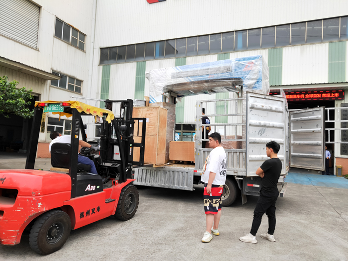 發(fā)貨現(xiàn)場,2021年5月28日,鐳翼DG仿形高壓無接觸洗車機(jī)發(fā)往廣東省廣州市粵漁加油站,預(yù)計(jì)4天時(shí)間設(shè)備可以運(yùn)抵用戶處。設(shè)備重量2700KG,18.5立方,6件貨。