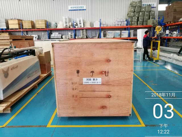 2018年11月3日,河南省新鄉(xiāng)市東風(fēng)標(biāo)致汽車4S店訂購(gòu)的一臺(tái)鐳鷹S90標(biāo)準(zhǔn)型電腦洗車機(jī)正在裝車,預(yù)計(jì)4天時(shí)間設(shè)備可以抵達(dá)用戶處。設(shè)備總重量1500Kg,7個(gè)立方,5件貨。