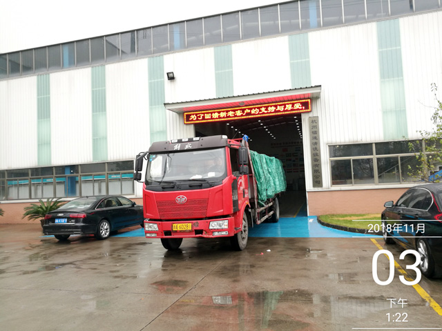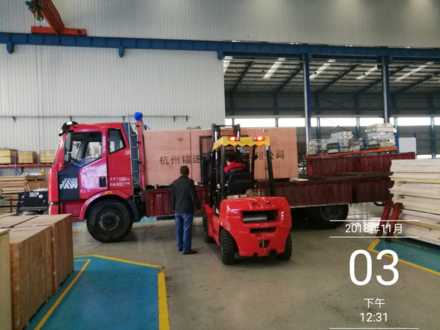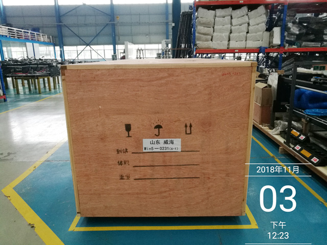 2018年11月3日,山東省威海市宏利客運(yùn)公司汽車修理廠訂購(gòu)的一臺(tái)鐳豹WIN5鍍膜風(fēng)干一體機(jī)正在裝車,預(yù)計(jì)4天時(shí)間設(shè)備可以運(yùn)抵用戶處。設(shè)備總重量1900Kg,9個(gè)立方,5件貨。