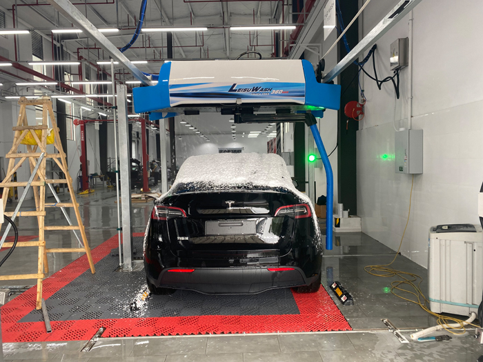 2021年8月29日,鐳豹360銳意型自動洗車機在江蘇省南京市特斯拉專洗服務(wù)站安裝完成交付使用。主要用于特斯拉新車交付前的清洗。
