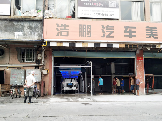 2018年8月5日,廣東省佛山市浩鵬汽車美容訂購的一臺鐳豹360炫彩型洗護(hù)一體機(jī)正式安裝完成,交付用戶使用。