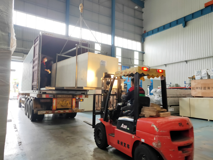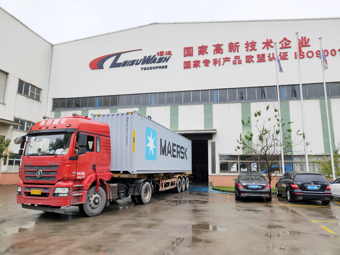 海外發(fā)貨現(xiàn)場,2021年10月13日,三臺鐳豹360炫彩型全自動洗車機將從上海港裝船出海發(fā)往歐洲拉脫維亞Sia Oxy,設(shè)備總重量7800Kg,39個立方,21件貨。