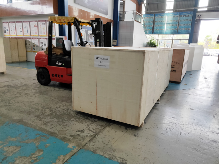 2020年10月23日,歐洲保加利亞Optec再次訂購的一臺鐳豹360炫彩型洗車機(jī)正在裝車,設(shè)備將從寧波港裝船出海運抵保加利亞。設(shè)備總重量2800Kg,13個立方,7件貨。