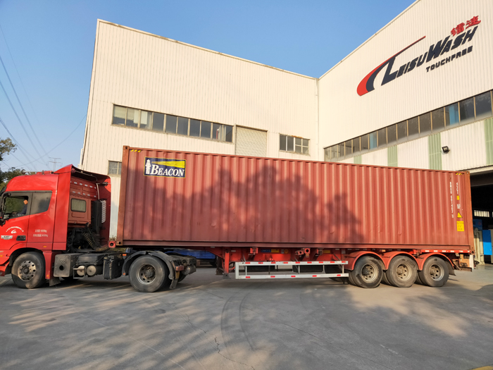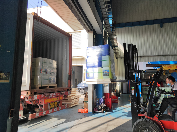海外發(fā)貨現(xiàn)場(chǎng),2022年1月12日,一臺(tái)鐳豹360炫彩型洗車(chē)機(jī)和400桶洗車(chē)液將從上海港裝船出海發(fā)往南美洲哥倫比亞。