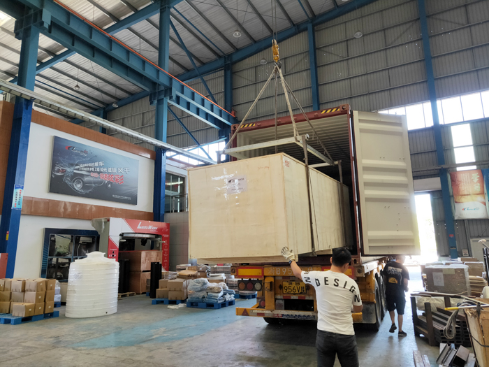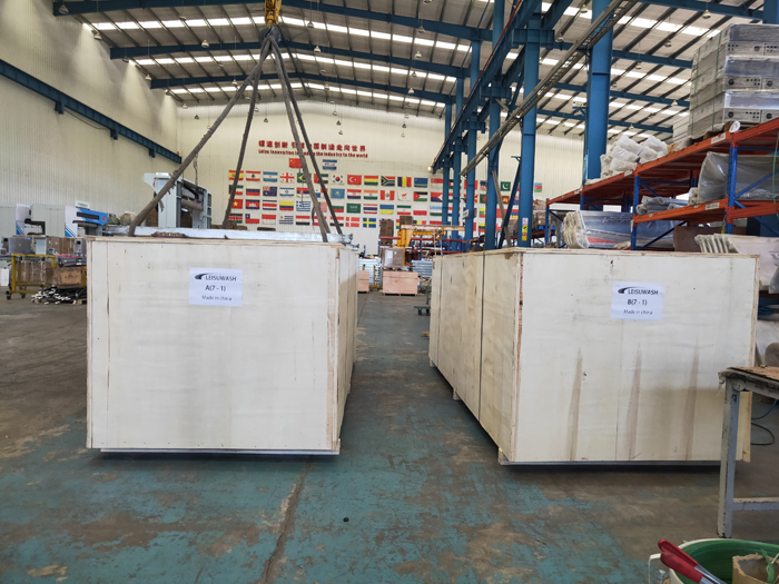 海外發(fā)貨現(xiàn)場,2022年8月8日,兩臺鐳豹360卓越型洗車機(jī)將從寧波港裝船出海發(fā)往西班牙阿利坎特,設(shè)備總重量5400Kg,26個立方,14件貨。