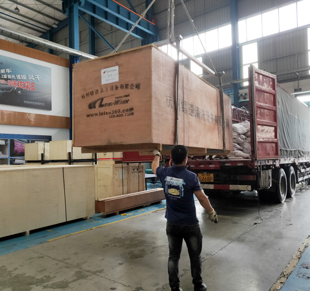 2020年9月12日,陜西省咸陽市延長石油加油站訂購的一臺(tái)鐳豹360炫彩型洗車機(jī)正在裝車,預(yù)計(jì)4天時(shí)間設(shè)備可以運(yùn)抵用戶處。設(shè)備總重量:2800Kg,13.5立方,7件貨。